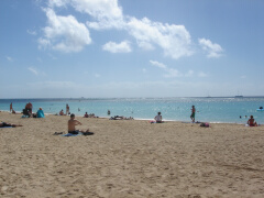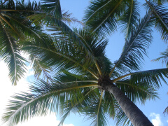 | ようやくビーチに到着 | やしの木からこぼれる太陽が眩しい | ホテルから見た風景 |