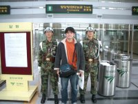 | 北朝鮮が見えますか? | これが観光バスです | トラステーションの兵隊さんと |