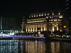 | ジャンボシーフードのチリクラブ | ライトアップされたフラトンホテル | 本日最後は夜のマーライオン |