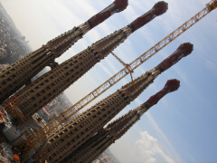 | サグラダファミリアの階段からの景色/TD> | サグラダファミリアの天辺 | もろ工事中丸出しです |