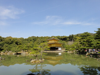 7:30起床。ホテルの和朝食です。 2000円くらいするようで、 とっても美味しい京の朝食でした。 天気はとっても良く観光日和。 バスで金閣寺へ向かいます。 金閣寺は桜が咲いてませんが、 水面に映る金閣寺がとっても綺麗でした。 さすがは世界遺産。 |