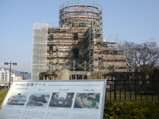原爆ドームは、昔、広島出張のときに見たはず なのですが、写真が残ってませんでした。 JALでふたりからおとくキャンペーンをやっており、 2人でなんと16000マイルで国内旅行できちゃう のです。そんなわけで広島へ。 何故か行ったはずの原爆ドームの写真がなかったので、 再度、写真を撮るのも目的です。 JALダイアモンドラウンジです。 バスに乗って、ドーミーインへ。雨降ってます。 ばくだん屋本店でつけめんを食べました。 めっちゃ美味いです。ホテルの温泉につかって、 本日終了。 翌日は平和記念公園です。 原爆ドームを見ました。残念ながら工事中です。 | |