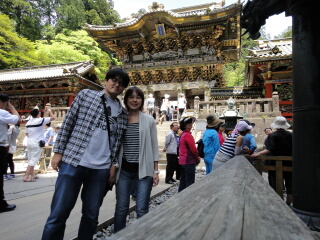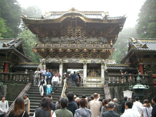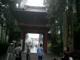 すっぴんの嫁としては、太陽が敵なのですが、 話し合いの結果、行くことになりました。 日光駅へ行きます。世界遺産周遊のバスで輪光寺へ 行きます。 輪光寺ではとっても親切に説明してくれるガイドさんの ような坊さんがいます。 まー、親切に説明しているのは最後にお守りを 売るためだったみたいですが。 続いて東照宮へ行きます。ザッツ日光ですね。 お日柄も良く結婚式をしてました。 鳴き龍の鈴のような泣き声を聞いてから、 二荒大社へ行きまう。 | |