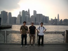 ここ、ここですよ!ブルックリンで一番景色の 素晴らしい写真スポットで有名な場所です。 おっさん一人で自転車のっても おっさん3人が集合写真撮っても それなりに絵になる背景なのです。