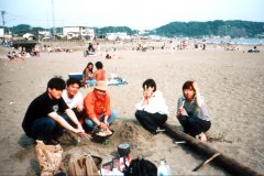 | 今回は浜辺でクッキング。 山じゃなくて、浜辺ってのも いーもんですよねぇ いろんなもん食べた。 砂も食べた(^^。 |