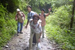 | 今回の背中ショットは、 心臓破りの階段の手前です。 ホントしゃれにならんわこの階段。 武甲山恐るべし。下りも滑るし。 でも滝がとっても綺麗な山です。 |