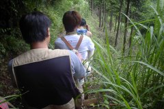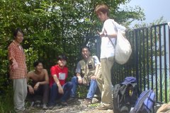 これが目的地の山頂の展望台です。 とーっても綺麗な眺めでした。 ここでおっちゃんに名刺を渡しました。 で、メシを食う場所がないので 山を下るのですが、荷物ありの下りは 辛いっす。 | |