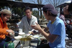 今回は和氣くんのドタキャン挽回スペシャル キーマカリー、チキン&ビーフでおます。 初参加の坂本さんは山頂でビールです。 さすが、高畑さんのお友達(笑)。 ![]() | |||