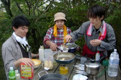 めちゃ雨降りそうだったのに、 現地についたら晴れてきました。 そして料理作るところまで順調。 でも、食事中、雨が降ってきました。 お好み焼き↓ ホットケーキ↓