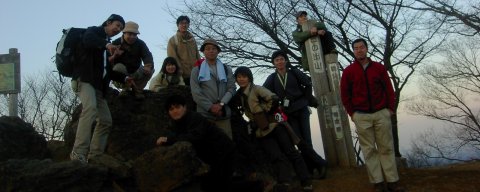 | いつもの場所で記念写真です。 そうそう、今回、初参加なお二人のペース早! 軟弱山岳会ぶりを肌身味わったようです(笑)。