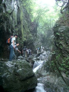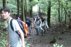スーさんプロデュースということなので、 みーんな軟弱コースと確信していたのですが、 今回の山は階段がきつくて長いので、みんな ブーイング。最初の沢でも迷いました。 ↓ソノヒグラシ(ヒグラシ科) 鳴き声:チュドーンでも、沢を登るのは風が冷たくて気持ちいいし 道も足場悪かったけど、歩きやすかったし、 きつさの後に平坦な道があるので、登り やすい山ではありました。 | |