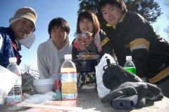 雪で滑る滑る。ホント雪山は気を使います。 いやー、ネタになることもなく無事、山岳会 終了です。次回はイタリアンを作りますので、 小林さんよろしくです。 ↓そんじゃ、帰る。お後がよろしいようで。