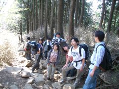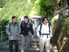 今回の山はもう何度も来てますが、大山です。 地元の宮内にはありがたいこってすが。 今回、メンバーがなんと3人も増えました。 秋葉系な人とアル中な人と日本語片言な人。 あー、すんません冗談で冗談(汗)。 新メンバーが加わり、今回は右の写真の ように、行列のできる山岳会です。 |