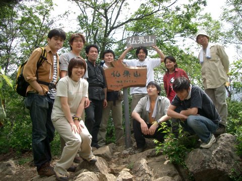 | 仏果山山頂にて10人で集合写真。 人が多かったです。どこみてるの? |