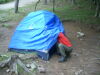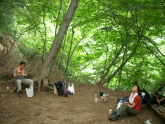 5分進んで10分休みようやく到着。 3年目にして初めて2つのテントが同時に 敷設されたのです。無事テントがたって 料理を始めるところで、いつもの歌が...