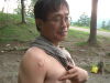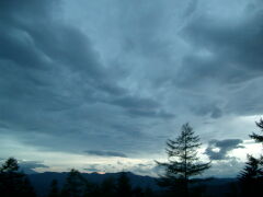 夕飯が済んで、女性陣が泊まる小屋で まったりして、テントに戻ります。 鳴海さん曰く「あの雲がでたら強風が吹く」 そんな予想通り、大雨と風で嵐状態です。 テントぶっとぶと思いました。 ↓こっち向かないで、キャランデルタール人