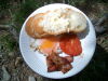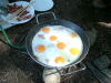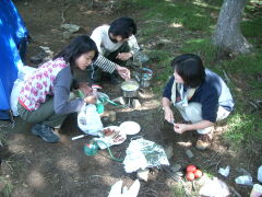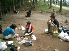 雨の中登って来たにしては、時間はやい はやい。さすが会長ペース。 会長はシャベルカーの下で寝たらしい。 朝食のご用意です。 ↓8つ目玉焼き ↓フランスパン ![]() |