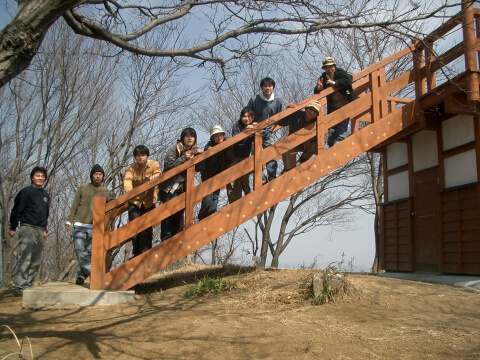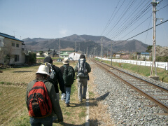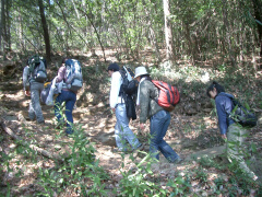 池袋から寄居駅へ一時間半くらい電車に 揺られて山へ向かいました。 今回の新メンバーは伊原くんが、留学中に 出合ったという綾乃さんです。 Gパンで行こうと思ったけど伊原くんに 「山をなめるな!」ということで止められた そうです。 って伊原くんが履いてる、それは...? 会長もGパンだし...。 |