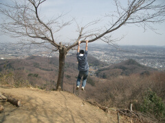 ということであっちゅーまに山頂です。 低い山にしてはよい眺めです。 展望台からの眺めはとてもよいです。 高所恐怖症のしげも登りました。 ↓顔ひきつってんじゃん