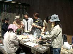 14人もいるとチーム分かれちゃいますね。 なんとか山頂に全員揃ってお料理タイム 熊本のニンニクを入れた焼きそばと、 源さんの砥いだ玉子が決めてのスープ。 ↓ニンニク焼きそば ↓豆乳スープ