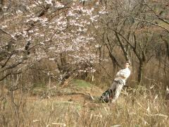さて下山です。桜の元でたたずむアンディー。 えーっと、タイトルの人形のことは、 忘れてください...。 鹿にアンディーが突かれただけです(うそ)。 ↓雨を呼ぶ新宿の死神(呪われ中)