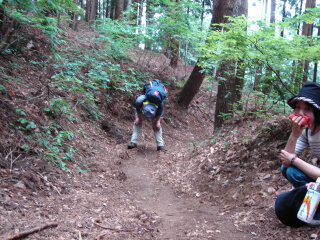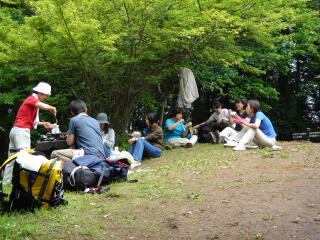 今回のプロデューサはいろいろと大変ですよ。なんせ、 山岳会始まって以来の出来事じゃないでしょうか? 男性より女性の方が多いのです。その数7:3です。 しかも、会長不在でベテランメンバは、鳴海さんと宮内だけ。 ということで言い訳ですが、写真撮る余裕がぜんぜん無い! 鳴海さんもこの通り(→)バテバテなのですよ。 久しぶりに乗るレッドアロー号で目指すは丸山です。 丸山ってこんなに厳しかったかなーって感じで、 ホント、坂道だらけです。そりゃ、へばるわ。 新メンバーに体力のある男性がいたのが救いです。 |