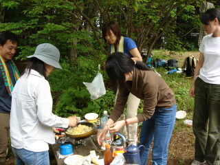 ということで、本日は新メンバーがなんと4人です。 I NYのバッグを持って頂いたのがラバちゃんこと桜場さんです(写真左)。本当に助かりました。 青いシャツが小林さん、ブラウンのシャツが三好さん、 白いシャツが田中(妹)さんです。 って、この写真じゃわかりにくいですね。 詳しくはメンバー紹介をご覧下さい。 集合時間の連絡がうまくいかず、野口さんと三好さんは 1本先のレッドアローで待ちぼうけさせちゃいました。 ていうか、アンディーいないじゃん!え、ドタキャン? アンディーのためにランチ企画したのにー(鳴海談)。 | |||