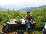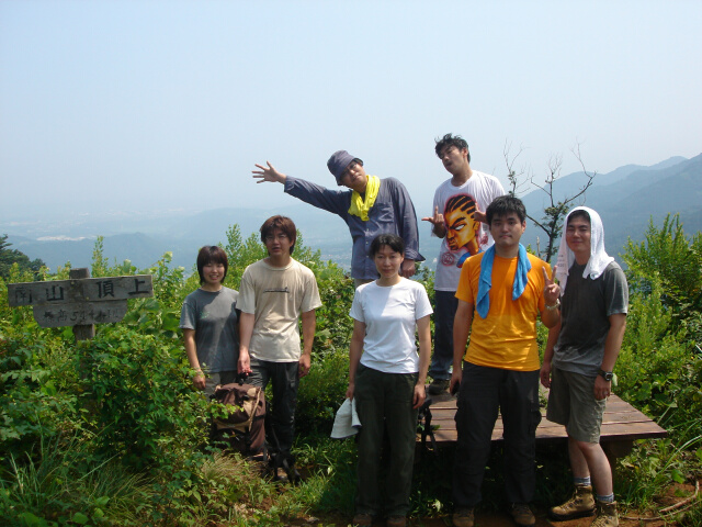 蜂に好かれる田中さん。疲れをしらない中川夫妻。 そしてバテバテレギュラー4人が今回のメンバ。 南山はホント辛い。空気が薄い。南山(なんざん)病です。 きっと、お盆なので何かがついていたのでしょう。 やっとついた山頂は森の墓場みたいな乾いた山頂。 集合写真を撮ってちゃっちゃと逃げました。 ↓恐ろしい量のアホ汁(汗)だしまくりのギャランドゥー