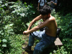 お盆ど真ん中!しげの休みに合わせて山岳会。 本日のプロデューサーは宮内くんです。 宮内プロデューサーってことはやっぱし丹沢です。 宮ヶ瀬を船を使って行こうという企画です。 今回は大きなカバンでプロデューサをこなします(爆笑)。 ↓川を泳いでる人 ↓南山遊歩道開始