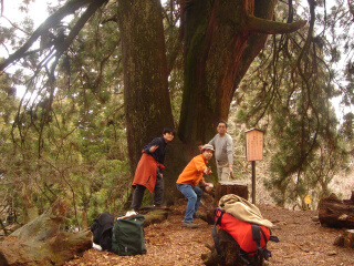 夫婦杉で集合写真を撮ってテンション上げます。 おばちゃん集団に抜きつ抜かれつ登山です。 下山してきた若い女の子たちの集団を見て、 もう少し早く登るべきだったと後悔しつつも、 10回くらい登っている山ですので、 あっちゅー間に到着。そしてあっちゅー間に下山。 ↓山頂にいたのは5分くらい ↓雲がかかってきました