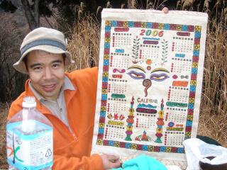 本日の山岳会に参加した人だけの特権、 宮内くんのネパール土産です。 まー、ただのカレンダーですが。 そして、いつもの鶴巻温泉の弘法の湯に入って まったりして、2006年の第一回終了です。 次回は、これ以上、人数が減ることはないでしょう...。 ↓見晴らし台も人気です ↓ドラゴンが現れた...どうする?