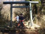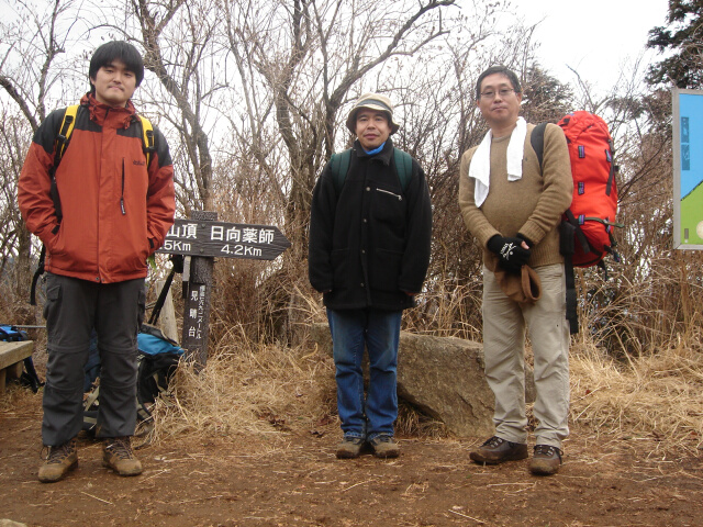 「見晴台」と書いた表札があるところで3人の集合写真。。。寒い |