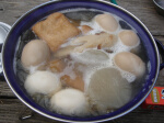 大山って景色が本当にいいですねぇ。 でもベテラン3人では感動も少なく、 山頂で食事するのをやめて、下山して見晴台でランチ。 本日のランチはおでん。寒い日はおでんが美味い。 あんまり寒くなかったけどね。 ↓煮タマゴたっぷりおでん ↓会長の赤い狐で締め
