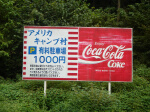 再びキャンプの開催でーす。 とりあえず新宿集合。決まっていることはそれだけです。 そして、とりあえず中央線に乗ります。 電車の中で、キャンプ場を決定。 「アメリカキャンプ村」へ行くことに決定。 ↓アメリカキャンプ村看板 ↓アメリカといえばコーラ
