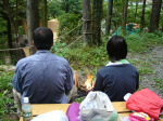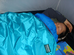 さて、食事終わったらやることありません。 ←お金じゃ買えない何か、プライスレス。酒買いました。 7時にはテントに入って寝ました。 お酒が入っているのでさくっと眠れたのですが、 起きたら22時。三木ちゃんも目覚めて 「そろそろ起きますか?」と言ってますが、まだ今日だよ! ↓父と息子の背中 ↓おねむ