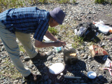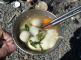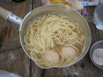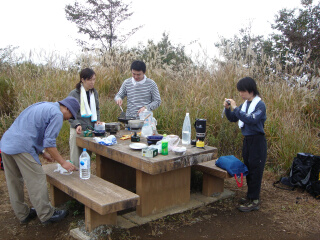 三湖台へ行ってお食事です。 ここはかなり開けたところで、眺めはいいです。 三木ちゃんはジェットボイラーに夢中です。 山頂はすっかり冬支度をしております。 本日のお食事はマルタイラーメン。 インスタントラーメンだけど、美味しいのです。 お湯を沸かしたがる三木ちゃんが笑えます。 ↓煮たまごも煮ます ↓モヤシ炒めとチャーシュー入り