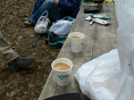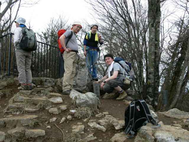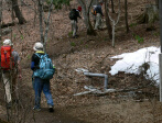 山頂は大混雑。記念撮影をしてさっさと戻り、昼食。 昼食は各自用意したカップラーメン他。 下山中は、「本当のエロス。リアルエロスとは」という お題でもりあがり、あっというまに下山。 「i said too much!」(鳴海談)。途中、前回挫折して 折り返した地点には綺麗な山桜が咲いていた。 ↓食後のコーヒー ↓挫折地点の桜
