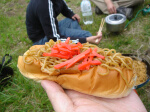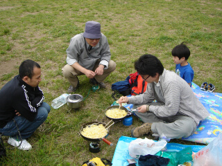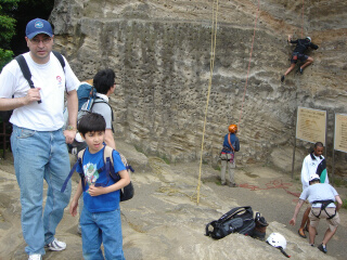 そんなわけで途中、のび太のように仁くんが、 寝ておりましたが、無事に山頂到着。 天気はイマイチで風が強かったのですが、 ロッククライミングしている人が沢山います。 山頂に来る前は、登る登ると言ってはしゃいでましたが、 怖くなって険しい顔をしているZくん(笑)です(←)。 ↓働くパパ ↓焼きそばパン