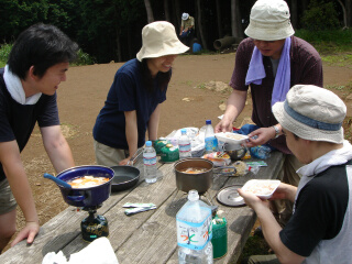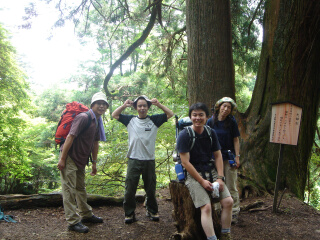 いつものように10分歩いたとこで、休んでいることろに、 「まだ10分しか歩いてないぞ」と、休もうとしている 子供を叱る父親の声(笑) そそくさと歩くのでした。 左の写真を集合写真に使おうと思ったのですが、 解像度高くすると合成がばれるので、この位置(笑) 誰が合成されているか、バレバレですね。 大山ですが、意外と疲れますね。宮内は、大阪暮らしで 体重が増えたので、足への負担が大きいのかも... ダイエット成功した小林さんは、楽ちんちんのようです。 いつものように、見慣れた山頂には興味もなく、 そそくさと下山するのでした(笑) | |