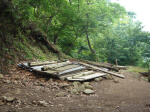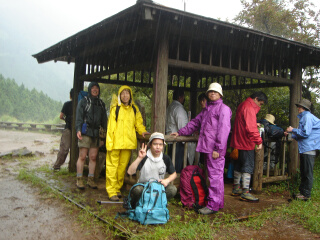 平林くんからメールが来た頃から雲行きが 怪しくなってきました。 雷&大雨。 雨合羽を着て下山します。 まー、なんとか無事にいつもの温泉について、 会長の突然のおごりでツマミを食べるのでした。 ↓いつもの滝も勢いが違う ↓ゲゲゲの灯篭流し