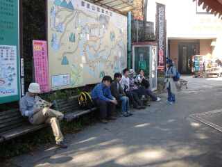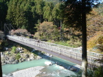今回の企画はスーさんプロデュース。 本当は美空ちゃんを背負って登場するはずが、 シングルです。美空ちゃんも奥さんも風邪を引いて しまったそーです。だいぶ、嘆いていたスーさんでした。 でも楽々コースは変更せず。御岳へ向かうのでした。 途中駅で、野口さん&渡辺さんと合流です。 ↓会長と合流したつり橋 ↓朝〜おき〜てー ゆず