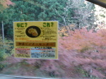 駅で待つこと数分。暫くして野口さんからメール。 「ゆみちゃんは気分がまだ悪く今日は帰ります。 私は1056に御嶽に着く電車に乗ります。」 え”〜。マジっすか? で、野口さん到着。元気な笑顔のゆみちゃんと共に... 駅には眉毛もホワイトプランのまゆげ犬がいました。 ↓景色は、なに?、これ? ↓紅葉がとっても綺麗!