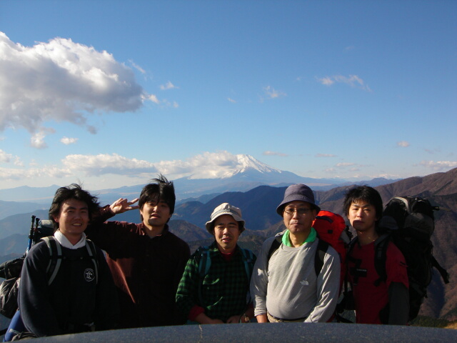 天気はとても良いです。風もあまりありません。 記念すべき山は烏尾根。ケイの初参加の時の山です。 塔の岳はバスに遅れたので、ちょっと無理です。 天気が良いので富士山もくっきりです。 ちょっと雲が邪魔してますが。 ↓眺めも良いのです ↓霜が降りております