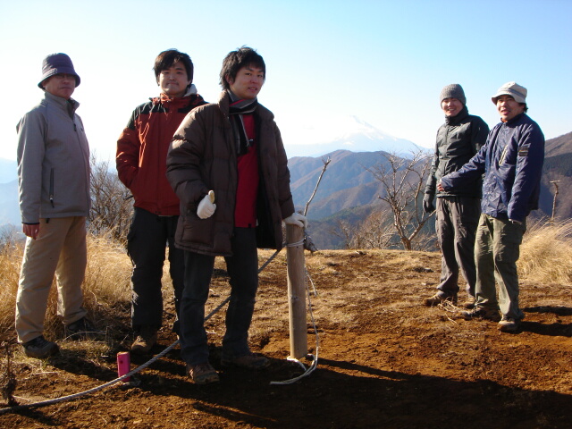 まー、天気がよくても冬のきつい山ですので、 参加率は悪いのです。 最後に残ったのはいつもの4人と鈴木婦人の代わりに 鈴木のケイってところですわ。 100回を飾るに相応しい、眺めのよい山です。 ↓いつものトトロの森 ↓この影は宮内くんです