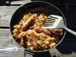 富士山がクッキリと見える烏尾根の山頂に到着。 「昼メシはガツンとやる!」という鳴海さんの携帯メールに 期待したのですが、やっぱ冷凍食品とラーメンでした。 まー、安いからいいか。 ↓ウィンナーとカレー炒飯 ↓カップヌードルは持参