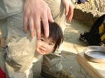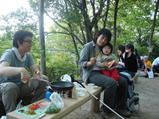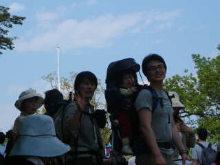 美空ちゃんのお昼は離乳食。 最近の離乳食はおいしそうですね。 山頂では犬を触ったり、杖でお掃除ごっこしたり、 美空ちゃん、楽しそうに遊んでおりました。 ↓おとんと ↓おかん