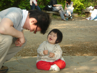 未だに宮内に懐いていただけない美空ちゃん。 笑顔といえば、パパの眼鏡を落とすギャグに 社交辞令で笑うくらいです(←)(笑) でも、今回取った山のビデオを帰りの車で上映したところ、 美空ちゃんが自分の声に反応していたので、 宮内も「アウアウアー」と言ったところ、 美空ちゃんも「あうあうあー」と答えてくれました。 心が通じ合った瞬間でした(笑)。 ↓かわいいねぇ ↓宮内も山に行ったんだよと