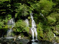本当は10月27日(土)に、Vitzの後輩と3コース目を回る予定だったのですが、前日の21時過ぎに「休出で行けなくなりました。」のメール。しっかし、アホな会社ですねぇ。なんでも経費削減のため月に一度の平日休みを作ったとのことで、その週に休んでるのに休出したら経費削減どころかアップじゃん・・・あ、うちのグループ会社じゃん・・・。27日は天気もよくて「紅葉が綺麗で最高でした。今までの失敗は全て取り消しです。」ってなエッセイで締めくくる予定だったのに、これじゃーあまりに締まらないじゃん。かと言って21時過ぎにキャンセルされても他に行く人も探せないので、お天気の中、寝るだけの寂しい休日を送るのでした。あ、別に後輩を責めるつもりはないですよ。そんな尻の穴の小さい男じゃないっす(後輩には怒ってると思われてる見たいだけど^^;)。応募〆切10月31日でもう諦めるしかないでしょ。でも、やっぱ行きたいなぁ。そんなわけで、火曜日に気合いで有給とって業界人(月火休み)の後輩と行ってきました。10時頃出発。さすが平日、そんなに混んでません。前回行った「日光小倉山森林公園」と「霧降の滝」は無視して、まずは「裏見ノ滝スポット」。紅葉はまだ緑が残ってますが、なかなかのもの。火曜日だというのに、人がいっぱいいました。クイズは見える順番に並べろなんですが、結構難しそうに見えましたが簡単でした。滝と紅葉の融合が美しかったです。さて、続きましていろは坂です。いろはにほへとちりぬるを・・・。明智平のレストランで山菜そばを食べました。普通に美味かった。マイセンとは関係ありませんが、ロープウェイに乗りました。「展望台は紅葉が綺麗」という予定でしたが、まだまだ緑が残っておりイマイチ。遠くに華厳の滝が見えます。外人さんも「ビューチホー」言ってました。続いて「竜頭の滝」へ向かうのですが、知らない内に通り過ぎてしまったので、「湯の湖」へ変更。ここのクイズも簡単で、合計9ポイントたまったので、他のスポットへ行くのをやめて、ここで「ゆば料理」を食べました。「ユバのさしみ」と「ユバの煮物」どちらも500円。高けぇ〜。一瞬で食べ終わってしまった。この後、温泉に入ってめでたしめでたしとなる予定でしたが、間違って有料道路に乗り入れ。諦めかけたのですが、「鬼怒川」という看板を見て今市ICで降りる。でもよく考えたら鬼怒川って全然近くないんだよね。で、またホボ諦めたところに「天然温泉はコチラ」の電光掲示板ピカピカ。ラッキーで、行ってみると。なんか怪しげ。これって温泉付きラブホテルなのでは?「カラオケ完備」・・・。外観もピンクで、なんか不倫カップルが入るような狭い入り口。おそるおそる入ると、普通に市民浴場でした。今市温泉。白濁していますが、名前の通り「イマイチ」でした。腕を腰に、コーヒー牛乳を飲み。本日の旅、無事終了。