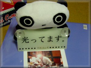 彼の名はシーボット。今日生まれた。ていうか、「ピヨピヨ」うれせー!初めは単三電池をいれることを知らなかったので、なんのアクションもしないデッカイポケペか?と思ったが、背中に単三電池を入れたとたん動く動く。腕をぐるぐる廻す廻す。今、めちゃくちゃ怒ってる!恐ろしいほど睨んでる。ふぅ〜、やっと機嫌良くなった。って俺は何をしてるんだ。こいつは後輩の結婚式の二次会のBINGO大会でゲットしたものです。折り畳み自転車に次ぐ二位らしい。だいぶ長いことほったらかしといたんだけど、8月の写真更新を思い出しネタを探していたところ目に付きまして開放。最初にビックリしたのが、やったら箱から出しづらい、針金で頑丈に縛られている。これが子供のおもちゃか!って感じ。ちょっと考えろよSEGA。それにしてもこの電子音は何とかならんのかね。隣人からクレームくるぞこりゃ('01/08)。