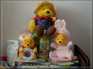 ふー、暑い夏がまたやって来ましたね。でも、夏は好きです。薄着の季節だからね^^;。しっかし、こう暑いとクーラーつけて、電気代かさむし大変。なにが嫌って夏休み。予定の無い夏休みほどサブいものは無いね。そんなわけで無理矢理、夏休みの思い出を作ってやると思い立ったが遅すぎました。作れませんでした。僕の計画はミャンマーに帰国する友達に便乗するって計画。2週間前に立てた計画じゃ無理あるよなぁ。あー、もうちょっと早く帰国情報を聞くことができれば。。。とりあえず友達の買ったチケット屋へ行ったのですが、無駄足でした。満員御礼。高い上にめちゃくちゃなルートな航空券はあったけど、一緒に行かないと意味ないしね。地球の歩き方まで買って、いどんだのにさ。あー、行きたかった。んで、ゴロゴロ夏休み決定。そんなわけで、先月は夏休みってわけじゃないけど、台湾へ行ってきたわけですが、その良良の部屋で寝てた時に囲まれた小Pooたちの一部です。他のもいるんなPooがいます。Pooだらけ。現在、ハワイアンPooを依頼されているのですが、見つかりません。誰かどこに売ってるかしってます?やっぱハワイのABCストアっすかね?('02/08)。